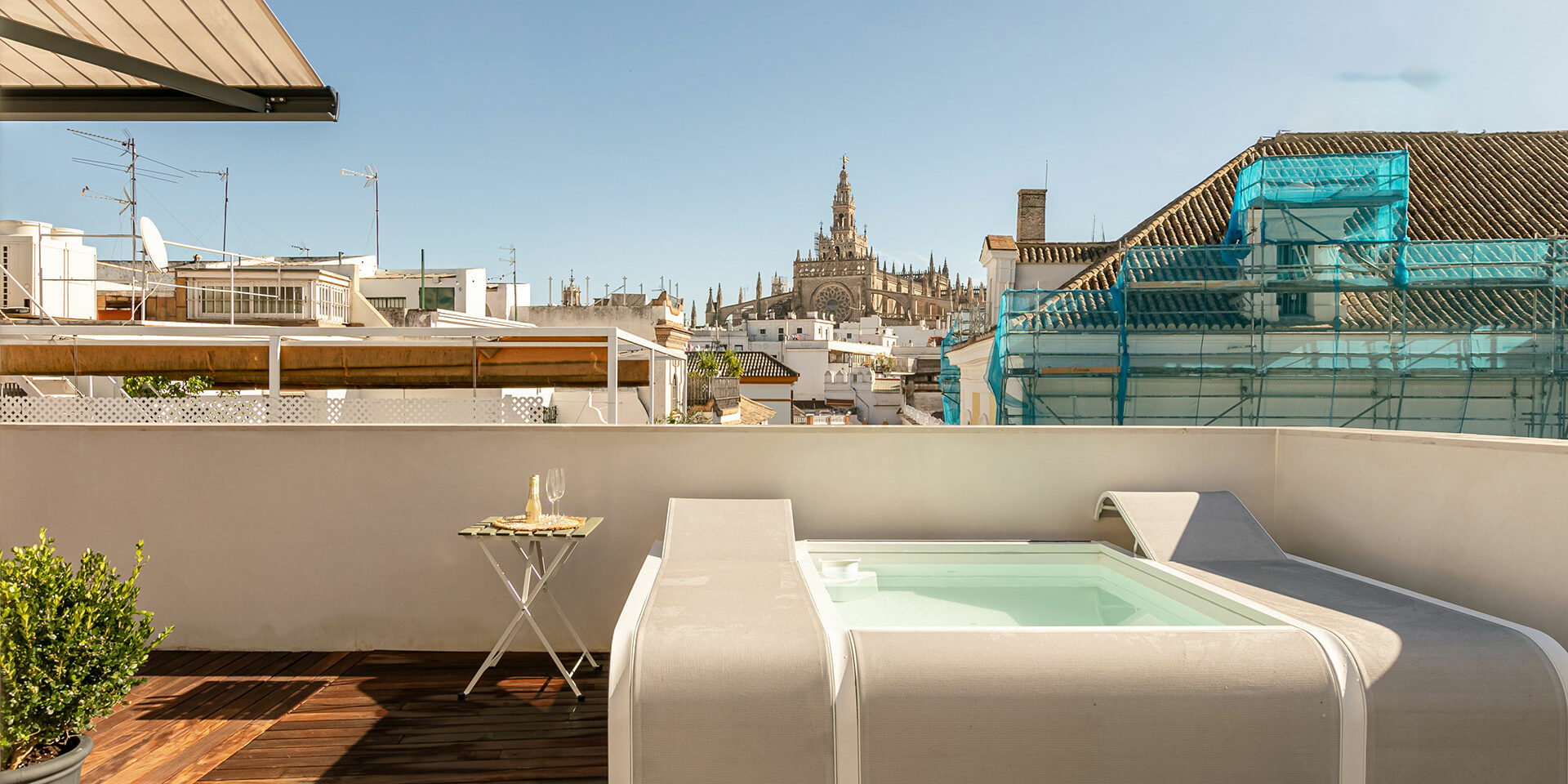 4 Apartamentos, piscinas privadas, terrazas con vistas, parking cercano.